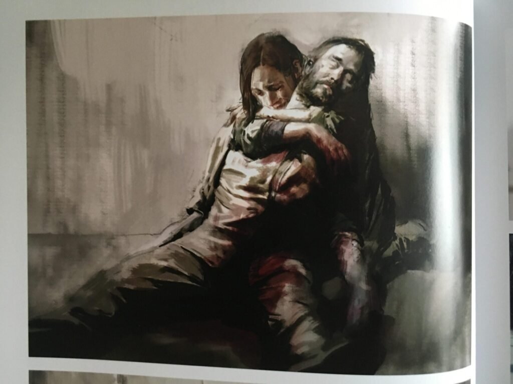 El abrazo que Ellie da al cuerpo inerte de Joel no es casualidad. Ese abrazo final podría ser la recreación de uno de los artes desechados del juego, arte que podemos encontrar en el libro de arte de The Last of Us Parte II.