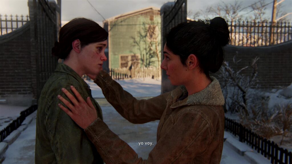 #1. ¿Con qué mano acaricia Dina a Ellie en la cara cuando le insiste en acompañarla a Seattle?